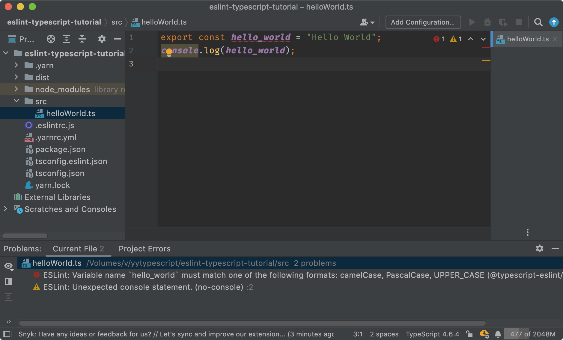 src/helloWorld.tsvới nội dung trống và thử compile. - Đã install ESLint và TypeScript ESLint.