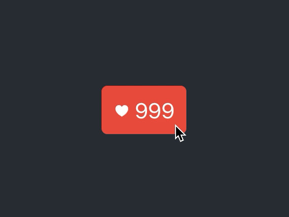Screenshot button &quot;like&quot; với icon heart và số &quot;999&quot; trên nền màu đỏ đặt ở giữa browser